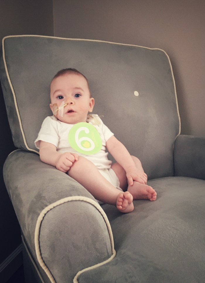 Three months Braxton weighted ten pounds three ounces. He was gaining. Very little but he was gaining. “Let’s watch him and see how he does.” I voiced my concern for his lack of interest with not only the bottle but tummy time and bearing weight on his legs. I was told to try a few things. The same things I was suggested before with no improvement.