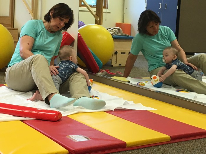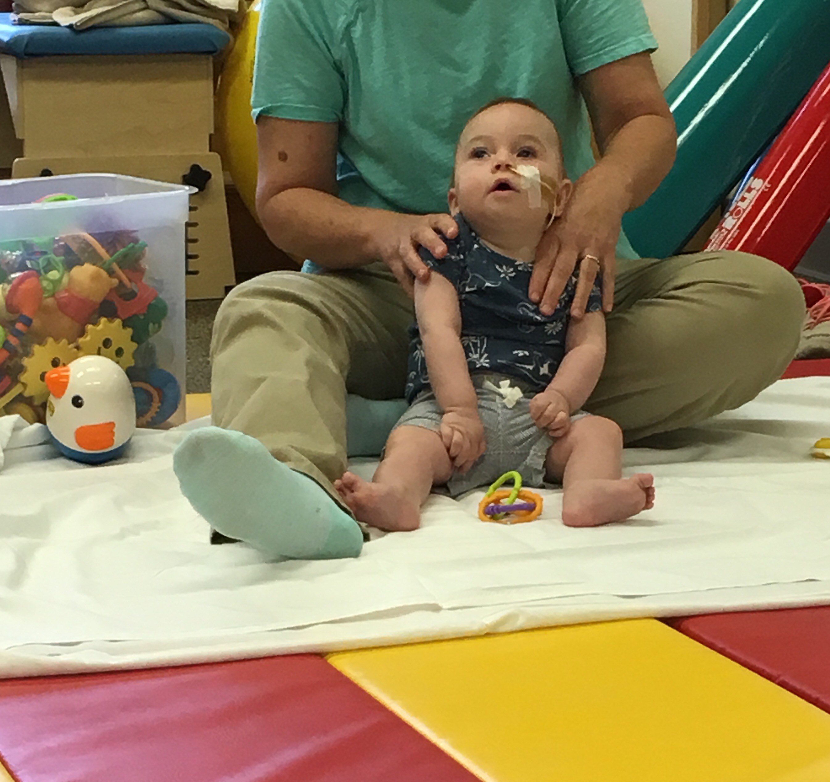 Since therapy has started Braxton has better control of his head, he can tolerate tummy time for a longer period of time, he can support himself on his elbows, has better control of his arms & hands, and has started the process of learning to roll.